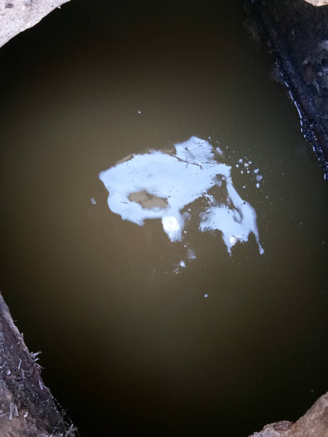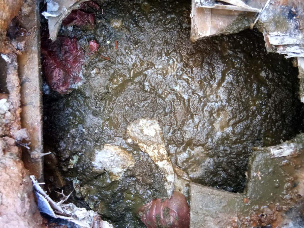 2020年4月27日天津市宁河区公厕作业前,化粪池粪渣垃圾很多。