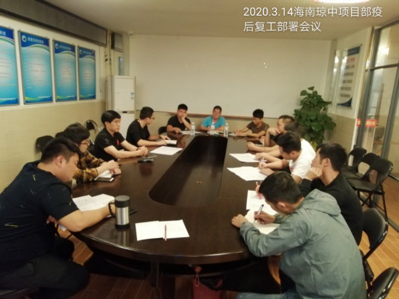 为了响应国家疫情防控和有序恢复生产,我们在海南琼中县富美乡村环境治理项目部召开了疫后复工部署会议,公司项目人员和各班组代表参加了会议。会议部署了今后在生产过程中如何在安全有效防控疫情的基础上,有序的开展工作。